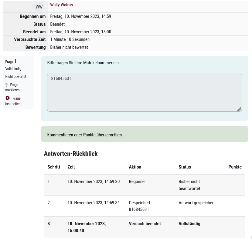 Moodle: Archivierung von Klausurergebnissen (Aktivität "Test")